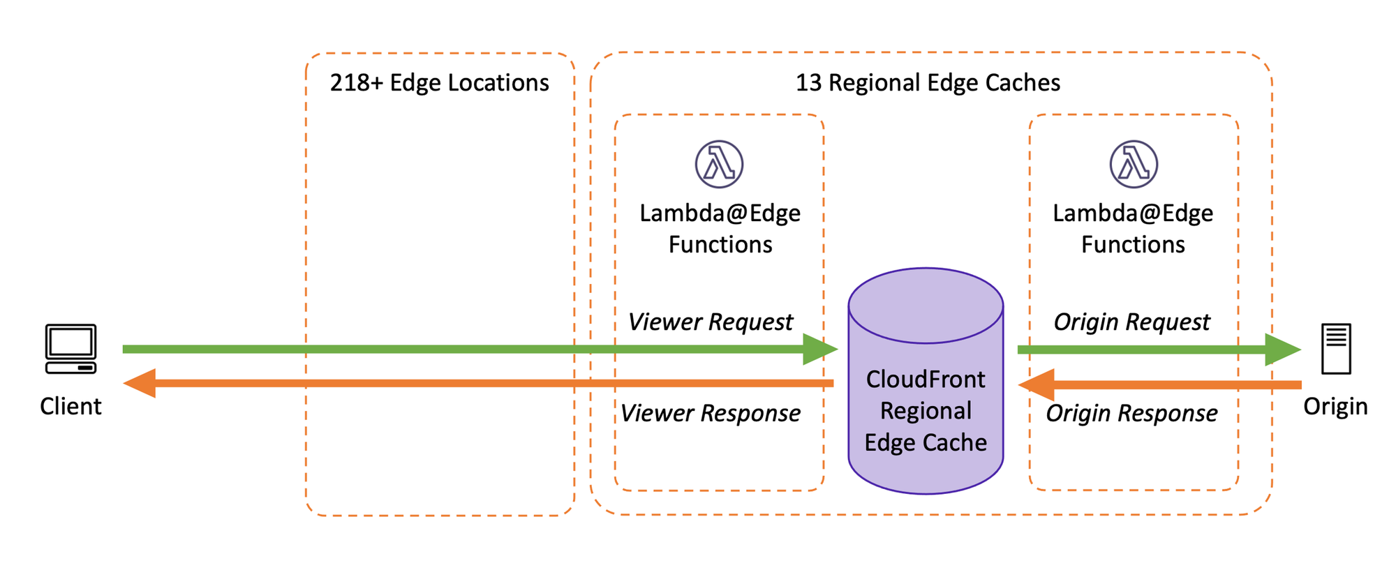 CloudFront는 다음 Viwer Request/Response, Origin Request/Response의 4개 지점에서 코드를 실행할 수 있습니다: