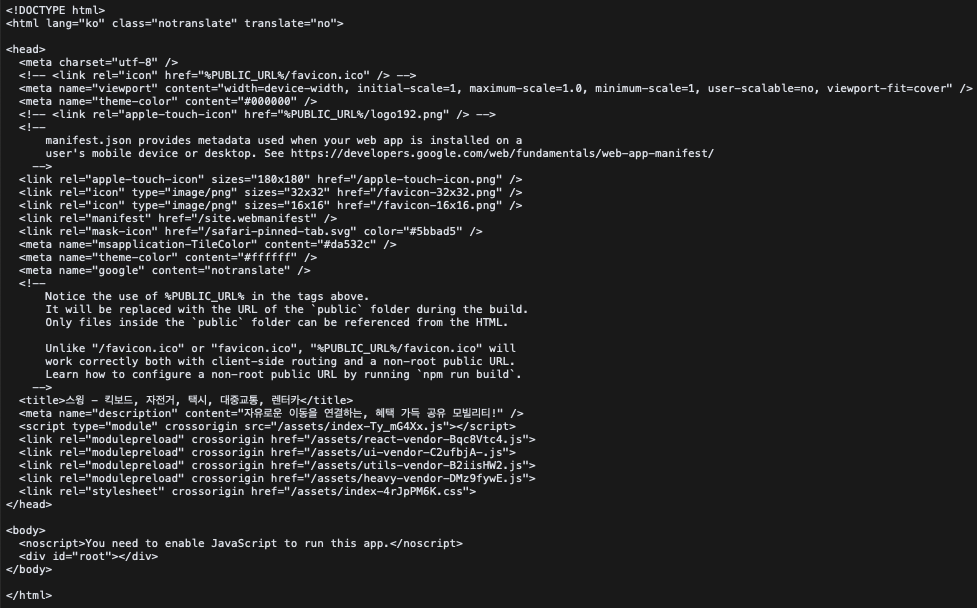 결론은 명확합니다. 초기 HTML 응답에 이미 메타 태그가 포함되어 있어야 한다는 것. 즉, 서버 측에서 메타 태그를 제공할 수 있는 구조가 필요했습니다.