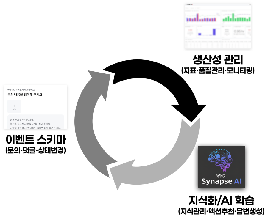 - 이 데이터는 단순히 과거 기록을 조회하는 것을 넘어, 생산성 관리(대시보드/알람), 품질 코칭(감사 가능한 로그), 지식화(유사 스레드 연결)까지 이어집니다.
