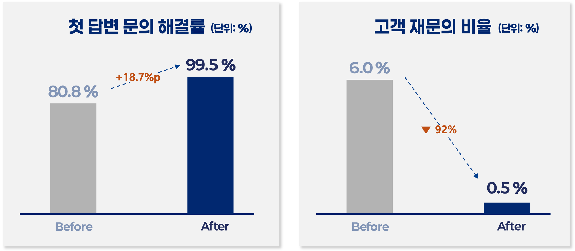 결과적으로 고객의 편의는 극대화되고 상담사의 업무 효율은 높아진, 진정한 ‘윈-윈(Win-Win)’ 구조를 완성했습니다.
