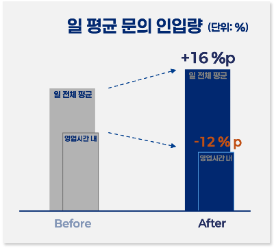 - 업무 시간 내 문의 집중도는 평균 12% 감소