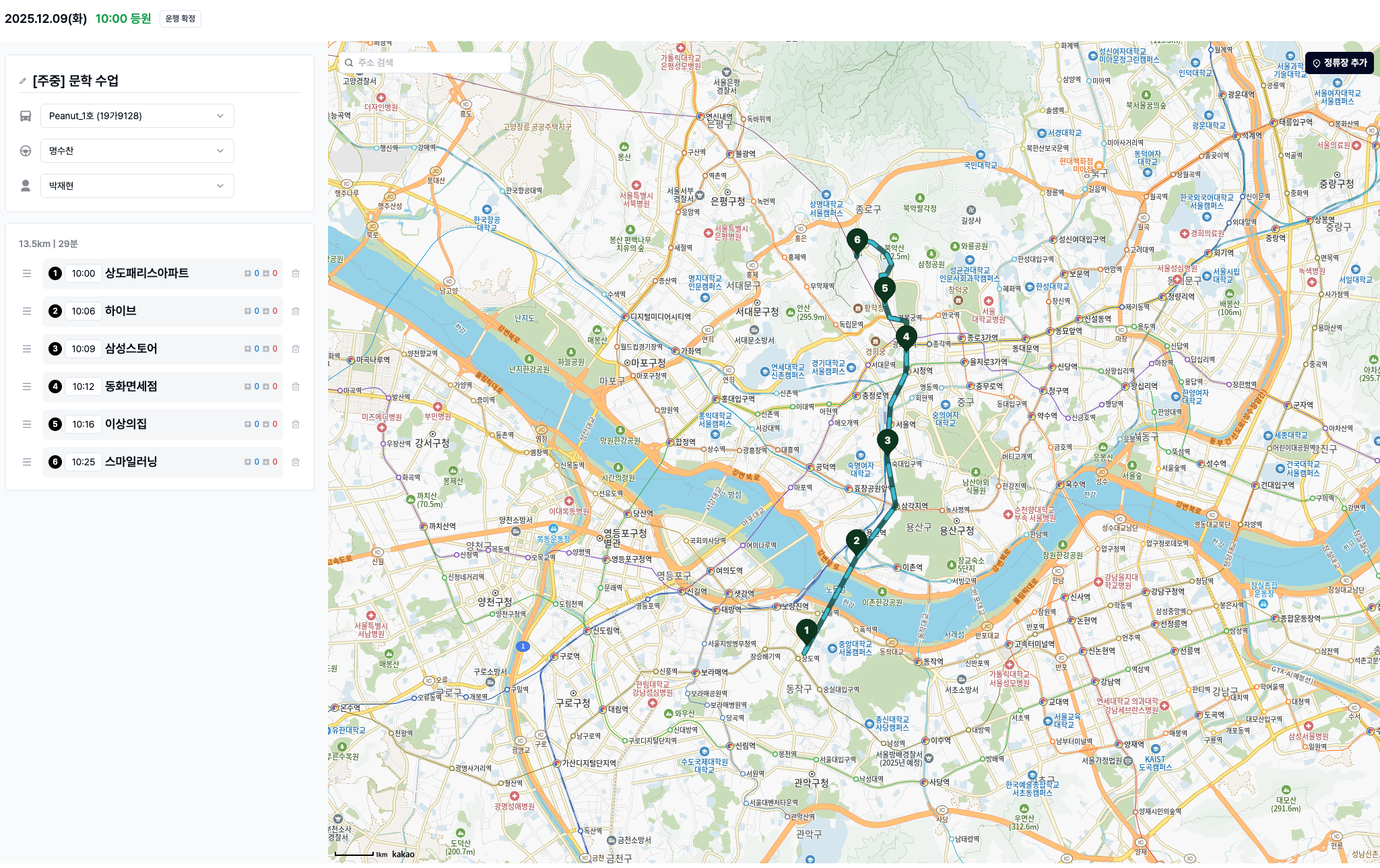 - 학생이 언제, 어디서 타고 내리는가 — 탑승일정