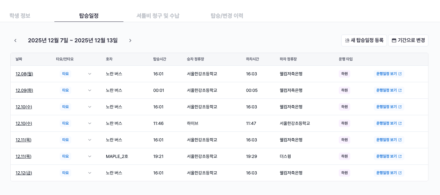 학생의 탑승일정은 두 가지 레이어로 구분할 수 있습니다.