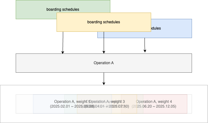 탑승일정은 운행일정 레코드 자체에 의존하지 않고, 논리적 식별자 내에서 가장 우선순위가 높은 운행일정과 동적으로 매칭됩니다. 두 데이터의 매칭은 저장 시점이 아닌 조회 시점에 동적으로 이루어지므로, 한쪽의 변경이 다른 쪽으로 전파되는 연쇄 반응(cascade)이 차단되었습니다. - Lazy Generation을 통한 상태(state)의 최소화